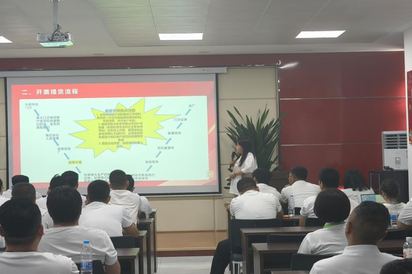 其次由銷售內(nèi)勤穆曉英,張曉梅老師對(duì)日常提貨流程及上半年績(jī)效數(shù)據(jù)做了公布。