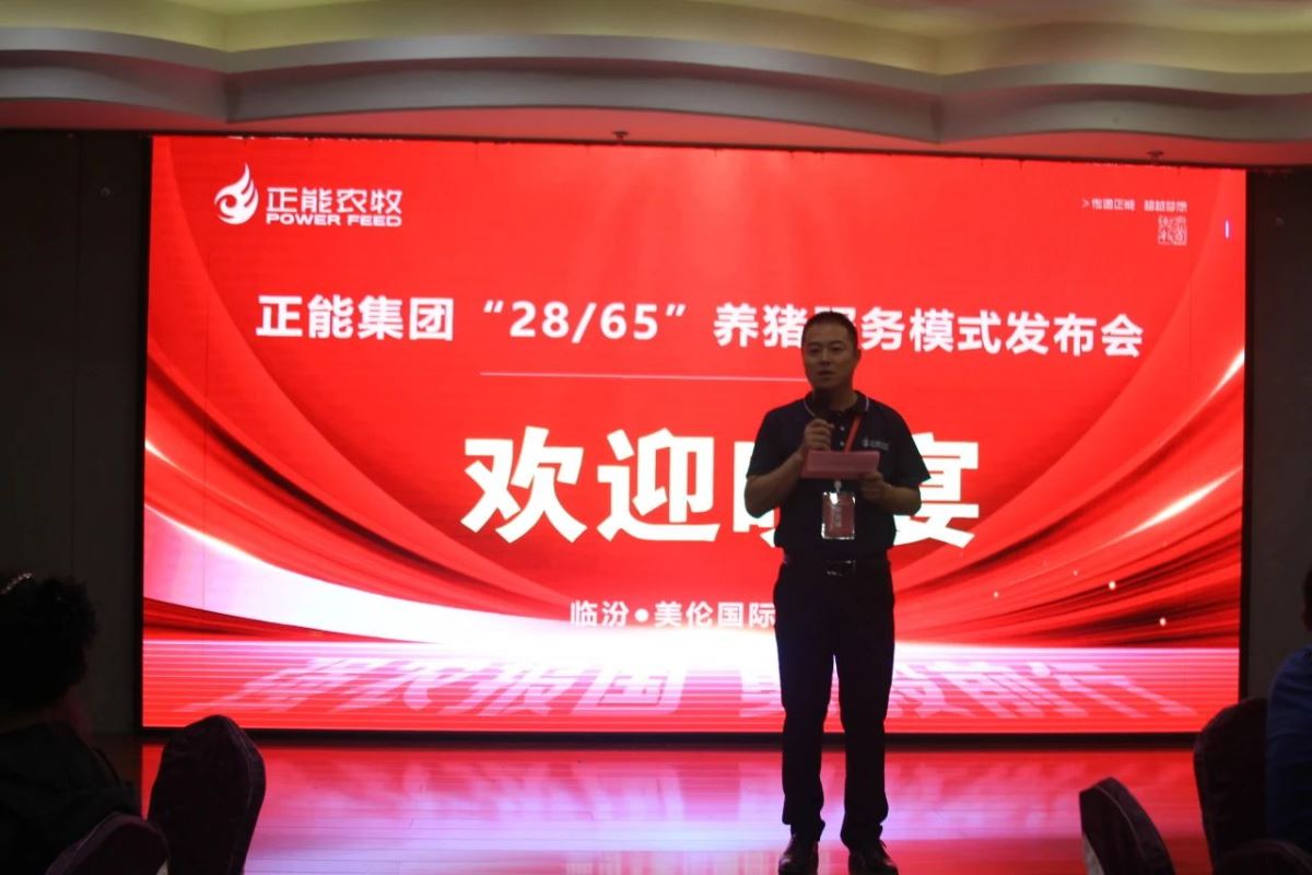 正能集團(tuán)創(chuàng)新合作社總經(jīng)理張濤老師上臺致開幕歡迎詞,熱烈歡迎各位養(yǎng)殖企業(yè)家百忙之中蒞臨參加正能集團(tuán)“28/65”養(yǎng)豬服務(wù)模式發(fā)布會,本次大會目的在于幫助大家明晰我國養(yǎng)豬業(yè)現(xiàn)狀及趨勢、明晰養(yǎng)豬完全成本并對標(biāo)、明晰增效降本技術(shù)控制要點、明晰我們山西區(qū)技術(shù)服務(wù)部如何協(xié)助大家在增效降本方面有那些具體策略和措施。衷心的希望通過本次會議能夠?qū)Υ蠹矣兴鶐椭軌驗榇蠹以谠鲂Ы当痉矫尕暙I(xiàn)價值!希望大家收獲滿滿。