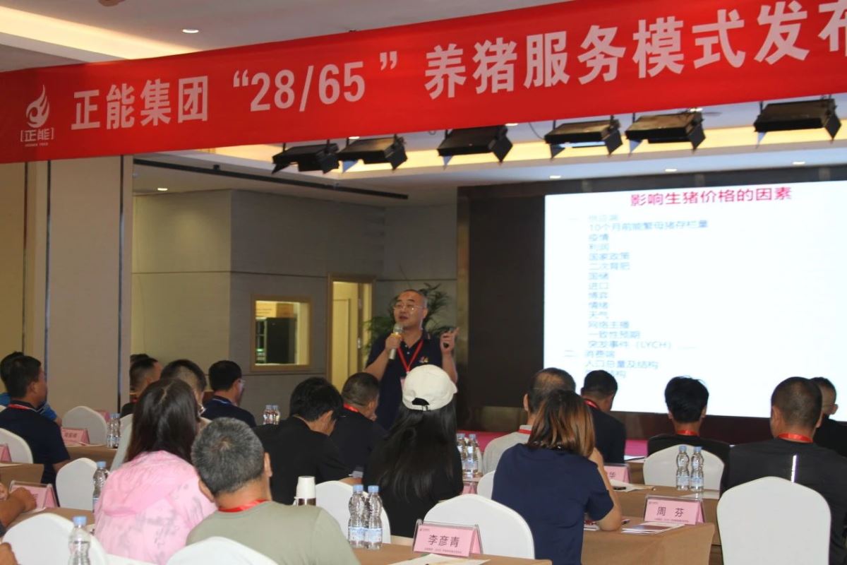 正能集團(tuán)山西科技園實戰(zhàn)派養(yǎng)豬專家王玉才老師重點分享了正能集團(tuán)“28/65”養(yǎng)豬服務(wù)模式、“28/65”養(yǎng)豬成本模式技術(shù)控制要點,通過大量實例和數(shù)據(jù)全面闡述了高效養(yǎng)豬的重要性。他希望未來通過與廣大養(yǎng)殖企業(yè)家通力合作,把正能集團(tuán)服務(wù)大型養(yǎng)豬企業(yè)的方案對行業(yè)輸出,讓更多的事業(yè)合作伙伴高效養(yǎng)豬,低成本養(yǎng)豬,增效降本。